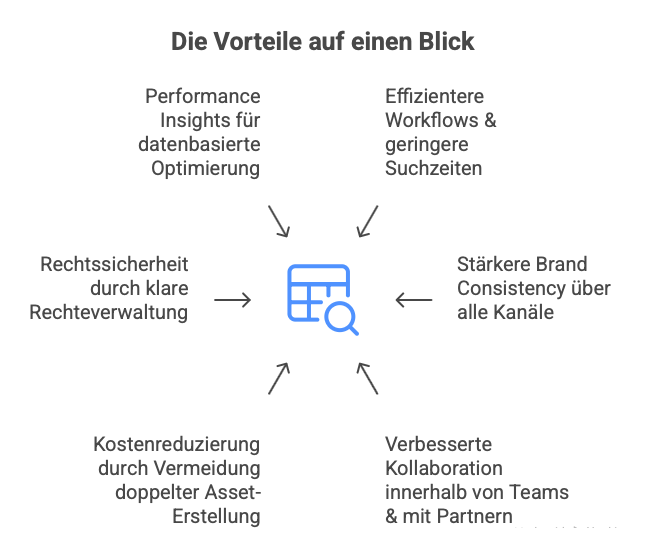 Marketing Asset Management ist kein "Nice-to-Have" mehr – es ist ein kritischer Erfolgsfaktor für modernes Content Marketing. Unternehmen, die ihre Marketing-Assets effizient verwalten, profitieren von: